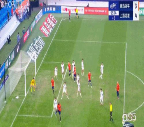 青岛海牛利用海港后卫失误扳平比分。