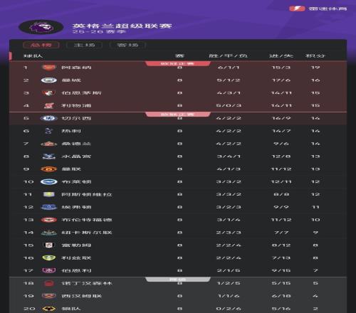 英超积分榜如下