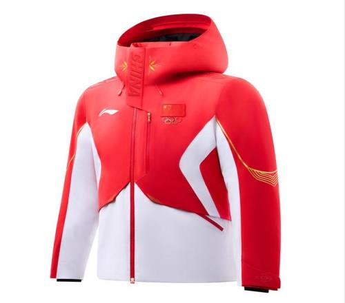 2026年米兰冬奥会中国体育代表团领奖装备,以红、白两色为主色调, “中国红”充分彰显中国文化元素,在正面勾勒出象征着五角星的线条;“雪山白”灵感源自冬季运动场景,也融入了东方审美里的留白意境,并在侧身勾勒出李宁品牌标识线条,同时搭配以雪道为原型的金色流线型线条为点缀,全身以上红下白的色彩拼接,凸显中国运动健儿的挺拔身姿。