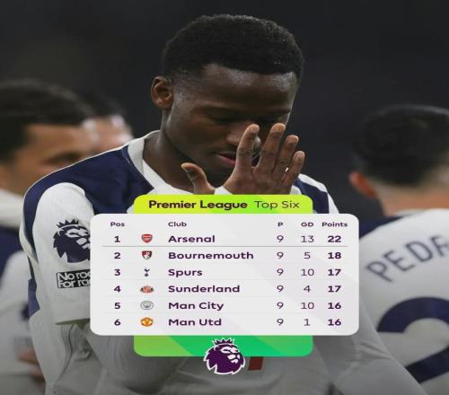 目前,伯恩茅斯在英超积分榜杀到了第二名,仅落后榜首的枪手4分。