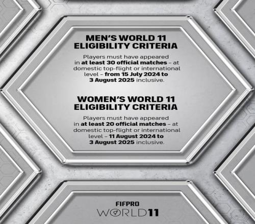 FIFPRO(国际职业足球运动员联合会)官方写道:“一些球星因上赛季出场次数不足,无缘入选2025年FIFPRO世界最佳11人阵容,令人惋惜。”