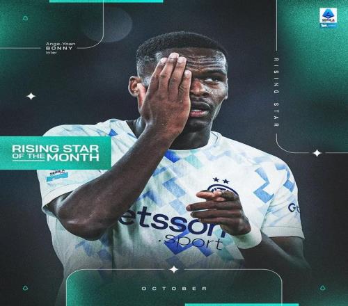 现年22岁的博尼10月份代表国米在意甲出战了4场比赛,期间他贡献了2粒进球和3次助攻,帮助蓝黑军团取得了3胜1负的成绩,最终意甲官方将这名法国前锋评为了联赛10月的最佳新星。