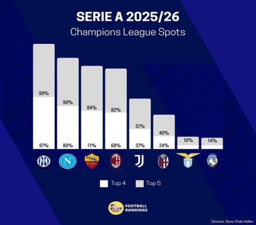 Football Rankings预测本赛季意甲前四名概率: