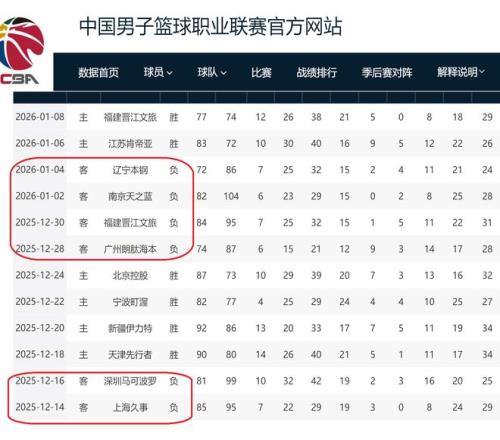 在客场分别输给了上海队、深圳队、广州队、福建队、同曦队、辽宁队。